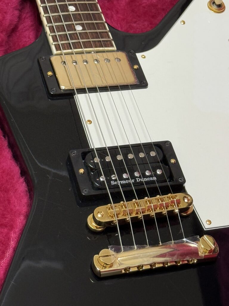 それでも十分かっこよかったんですが、メインギターのレスポールカスタムに寄せたいという気持ちが止まらず、思い切ってゴールドパーツに総入れ替え!