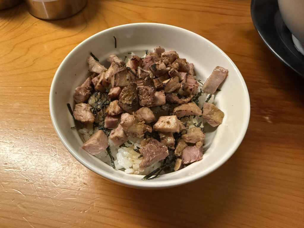サイドの「豚飯」。焼いた細切れチャーシューの香ばしさで、箸が止まらない。