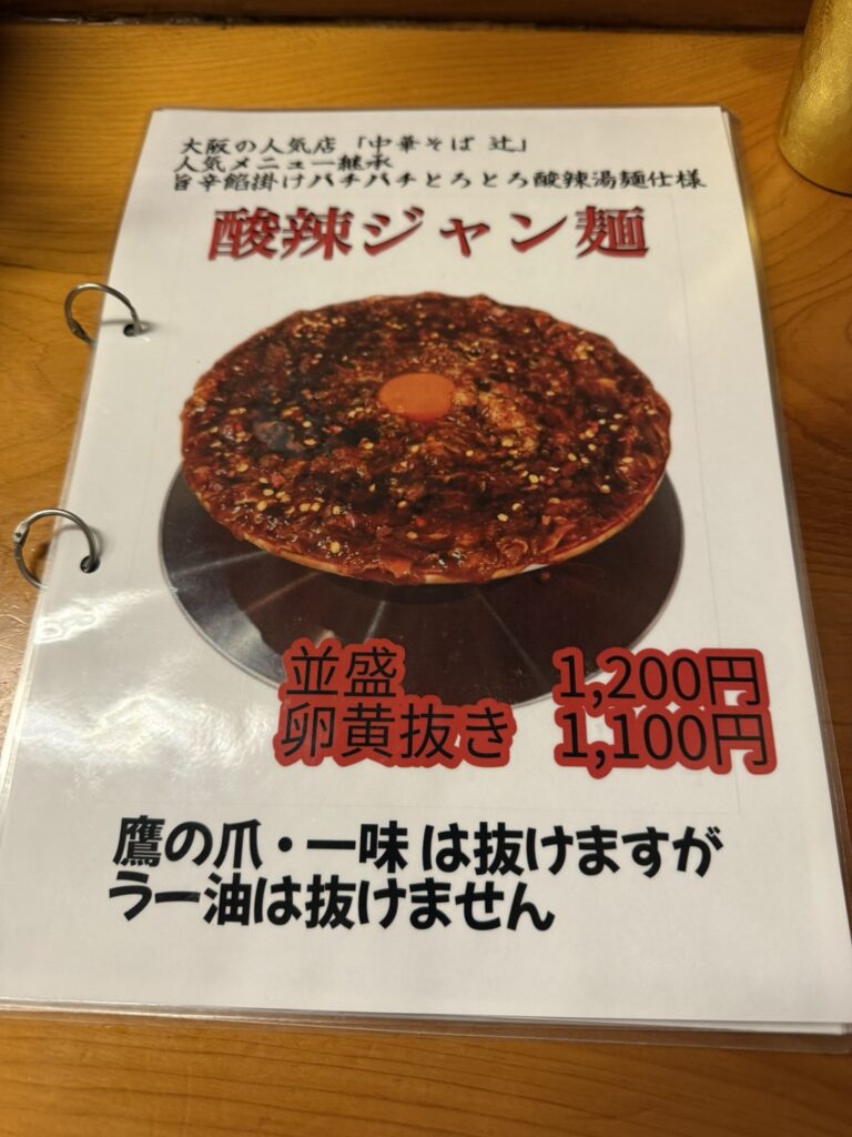 刺激のある酸辣ジャン麺もラインナップ。辛味調整可(ラー油は固定)。おそらく期間限定だと思います。