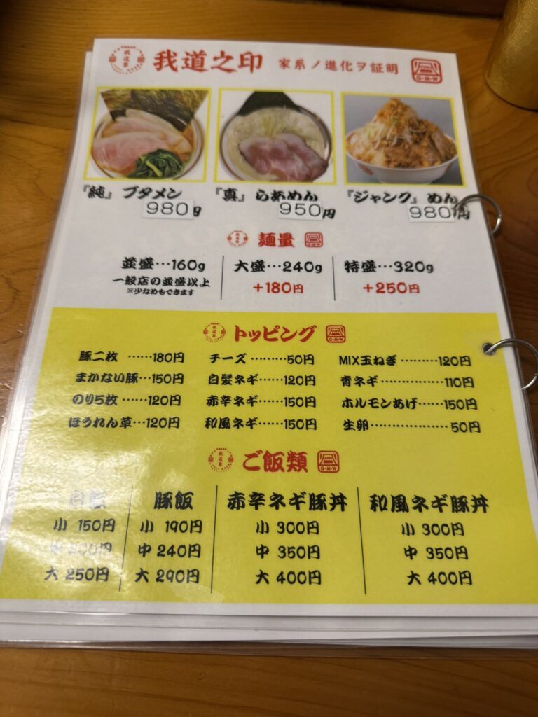 純ブタメン、真らあめん、ジャンクめん。ご飯ものやトッピングも豊富。