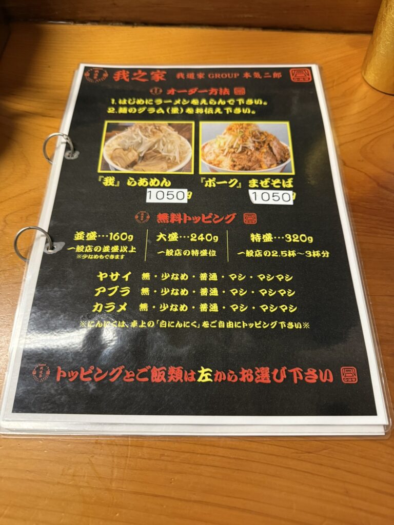 “我之家”の二郎系ページ。ヤサイ・アブラ・カラメの調整が可能。