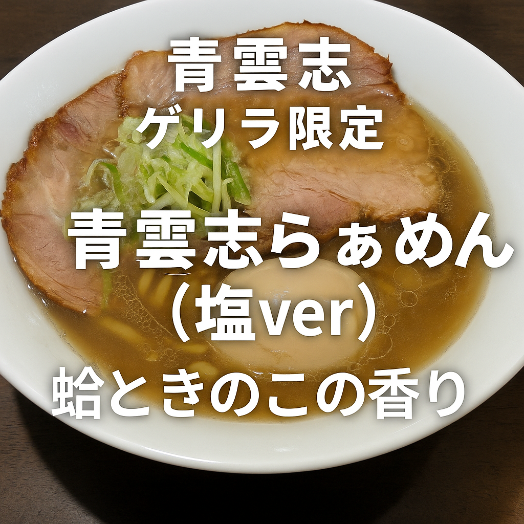今日はたまたま「青雲志らぁめん(塩ver)」をいただく機会に恵まれました。