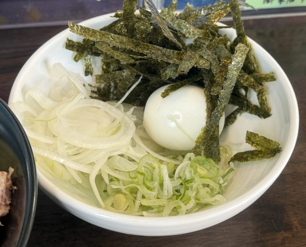 別盛の玉ねぎ・ネギ・海苔・たまごのこのセット。